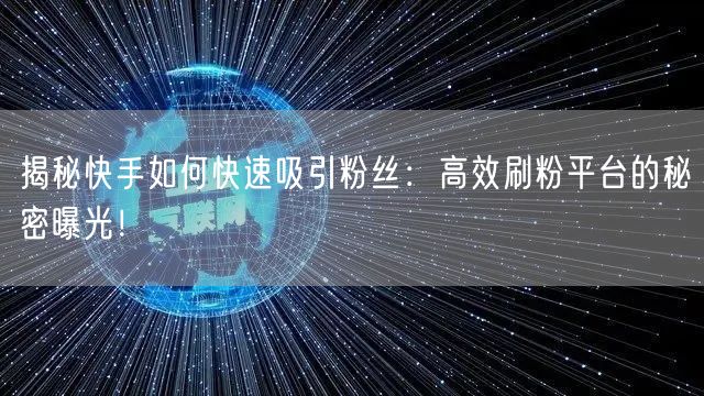 本文揭示了快手如何快速吸引粉丝的秘密,带你了解了高效刷粉平台的运营策略。通过优质内容创作、定期互动活动、利用标签和热门话题、合作推广以及精准投放广告等手段,能够在快手上快速吸引粉丝,提升个人影响力。同时,也提醒广大用户在选择刷粉平台时要注意安全性和合法性。